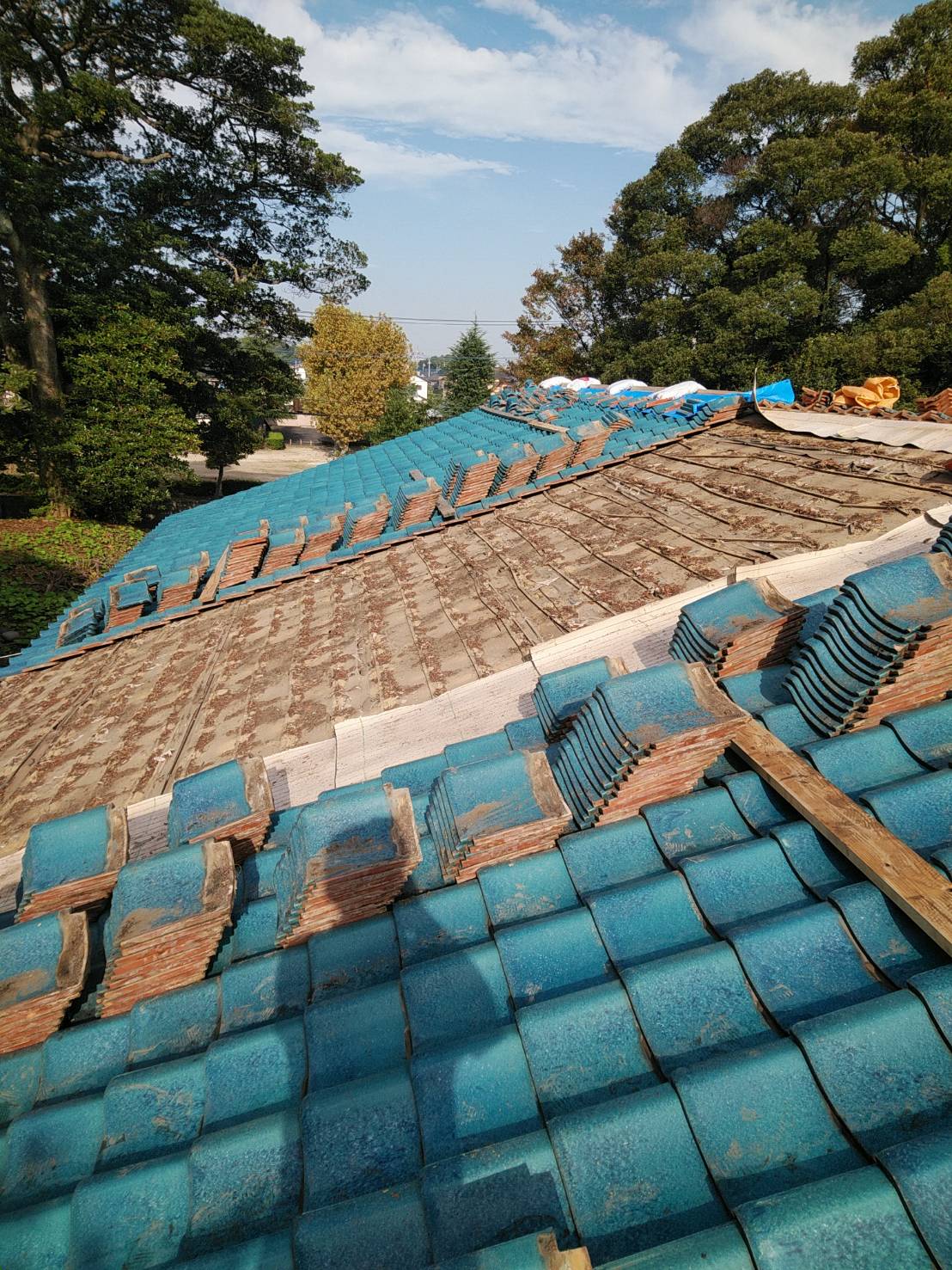 築43年の本建築入母屋造りの建物です。何年か前の台風であちこちズレやめくれたりしているので修理してください、と依頼があり工事伺いま…