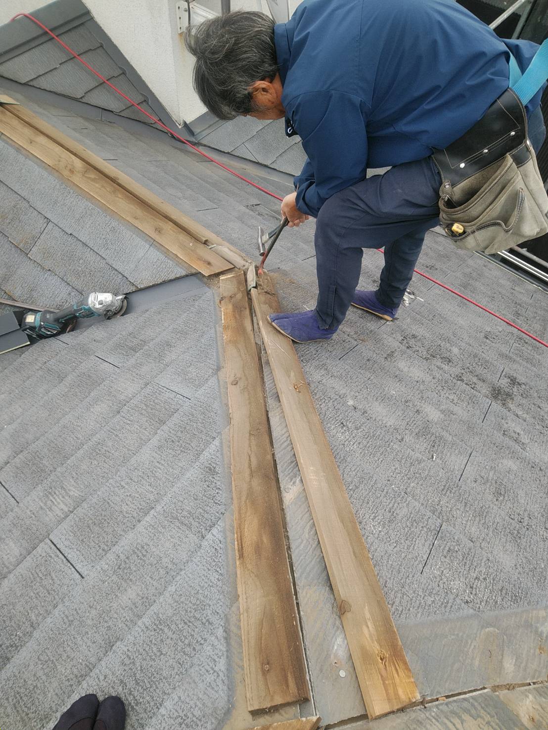 築43年の本建築入母屋造りの建物です。何年か前の台風であちこちズレやめくれたりしているので修理してください、と依頼があり工事伺いま…