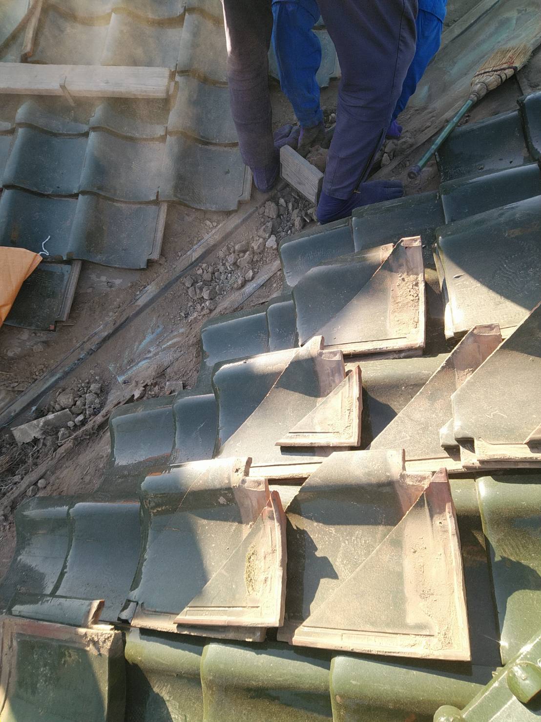 築43年の本建築入母屋造りの建物です。何年か前の台風であちこちズレやめくれたりしているので修理してください、と依頼があり工事伺いま…