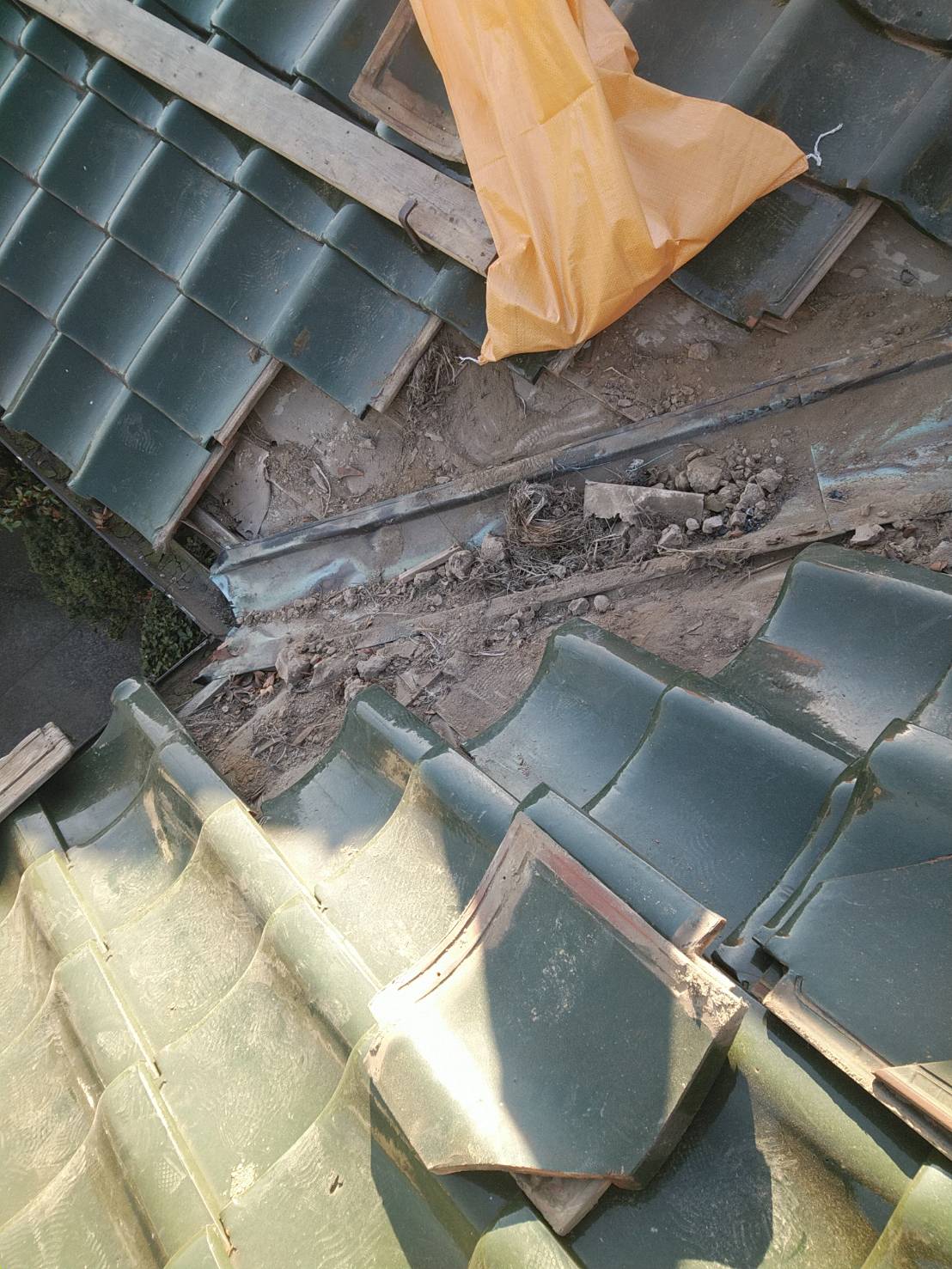 築43年の本建築入母屋造りの建物です。何年か前の台風であちこちズレやめくれたりしているので修理してください、と依頼があり工事伺いま…