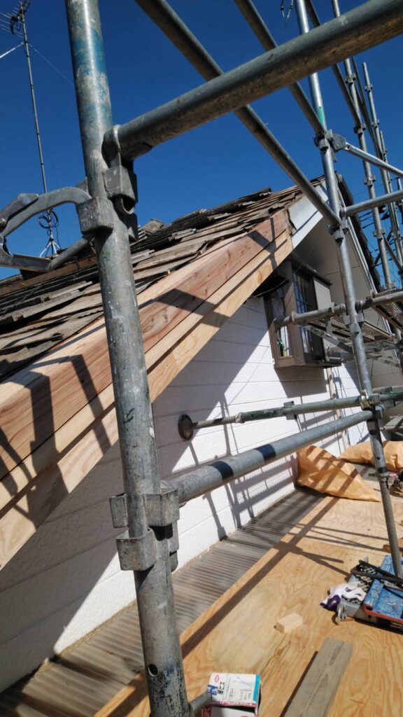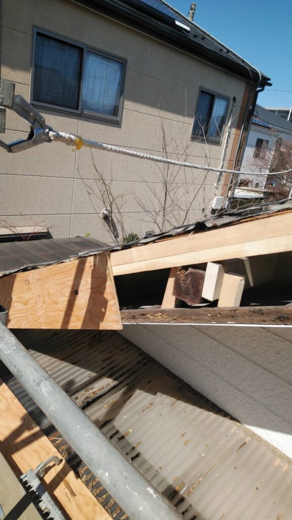 釘が腐食して瓦を割ってしまっていたところから、長年雨が侵入していたことにより躯体部分と屋根下地が腐食したことが原因で瓦が落ちてしまいました。