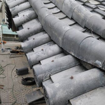 台東区R寺の工事写真です!やっとここまで進みました。もう少しで仕上がります。この写真の新しい平瓦を葺いてある面は勝手が違う(左ザン)、に入れ替えまし…