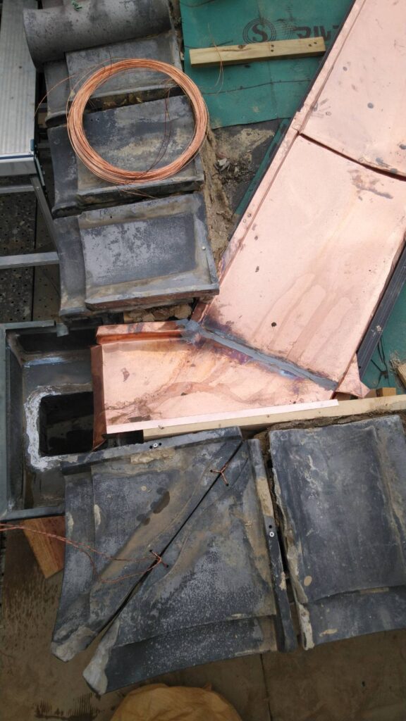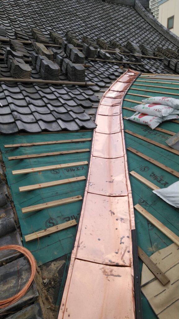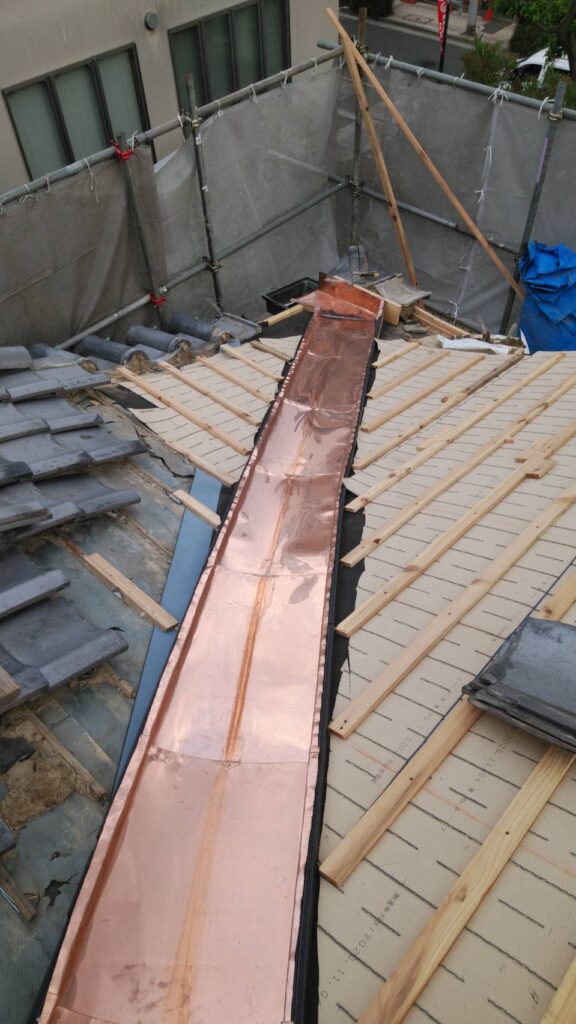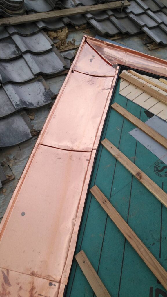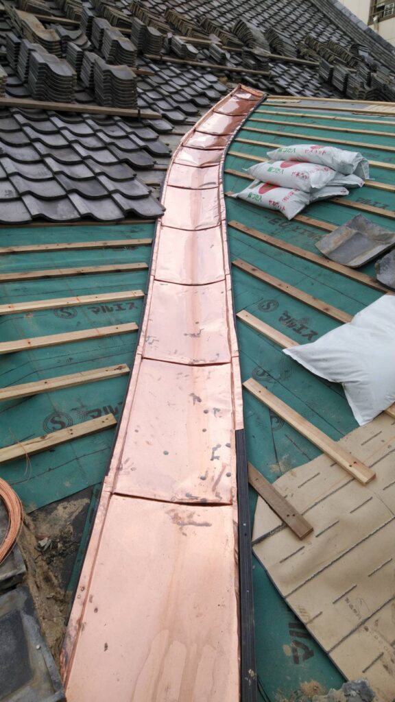 雨ばかりでなかなか工事が進みませんでしたが、やっと下地と銅板谷の工事が終わりました!