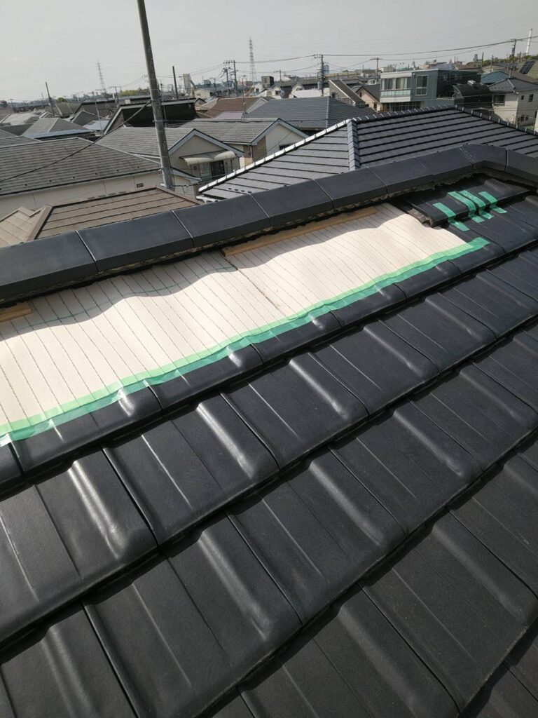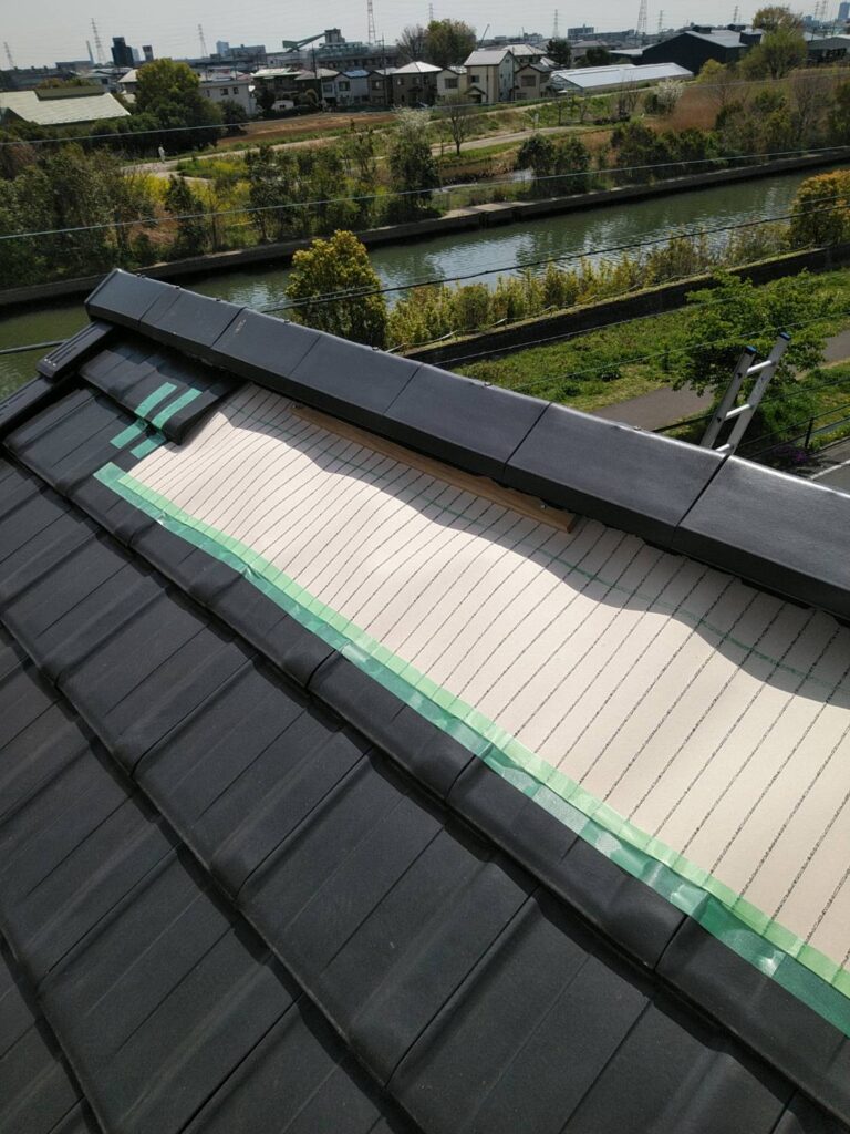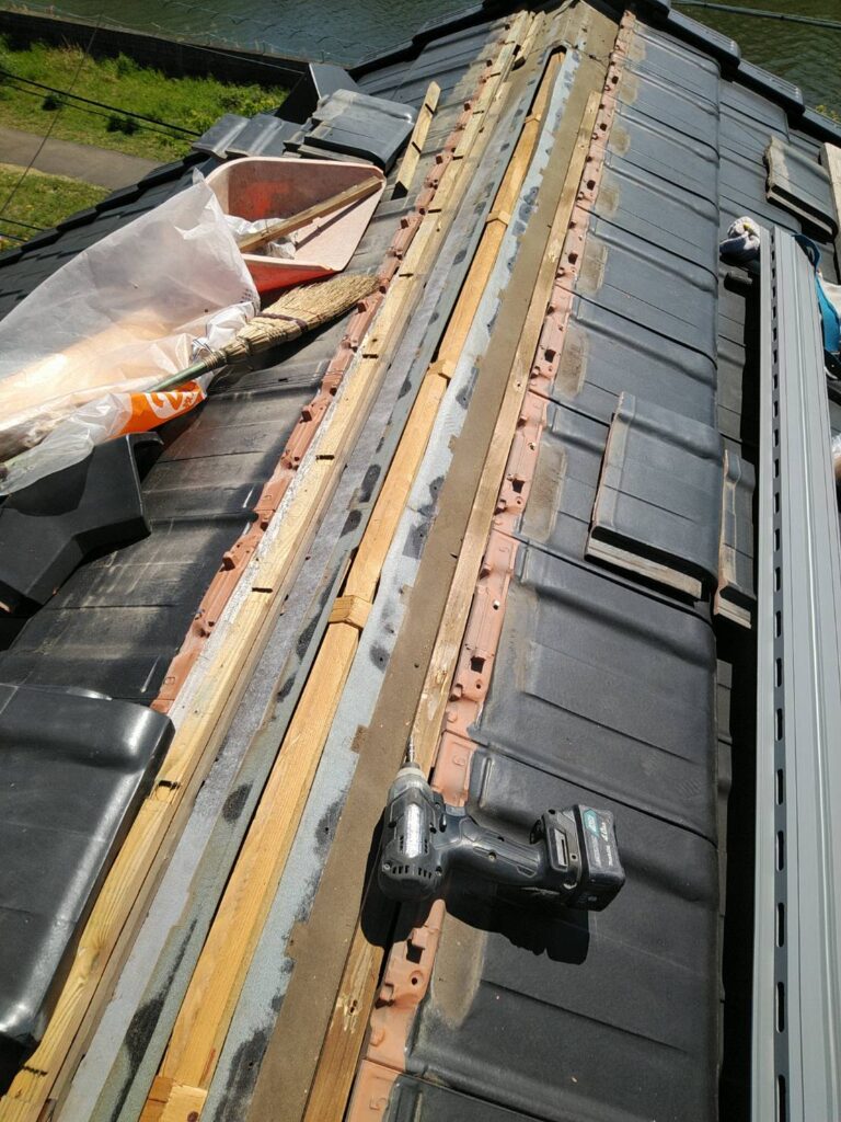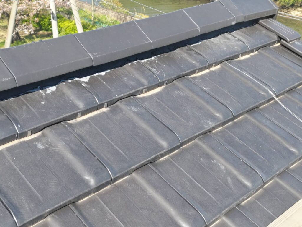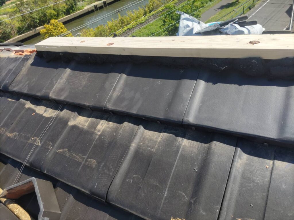 このままでは雨漏りの原因になってしまうため、まずは応急処置として養生を行い、その後、瓦の復元作業を行って無事完了しました。